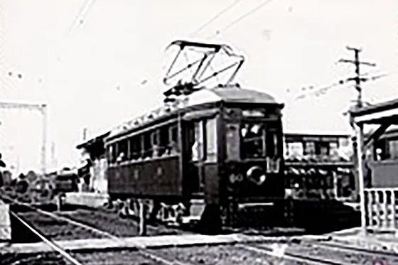 大正期の京王電気軌道を代表する全長11.7メートルの木製ボギー車で、全部で44両がつくられました。出入台に扉が付いた先細りの車体が特徴です。