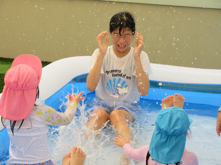 普段、小学生より下の子どもたちと触れ合う機会がないので、とても良い経験になりました。水遊びや室内遊び、楽しそうにワイワイと遊んでいて(ほど良く手加減できていて)良かったです。