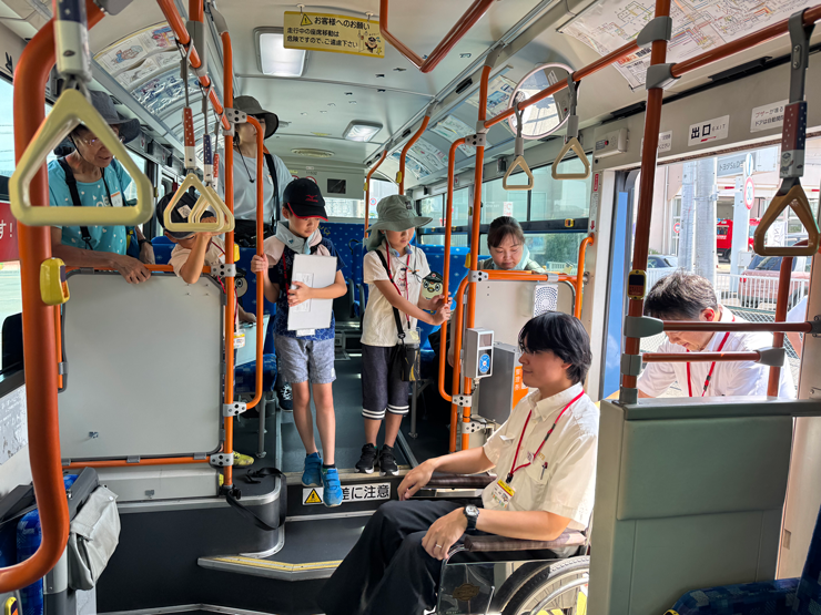 車いすの乗車を手伝ったり、車内でアナウンスをしたり、たくさんのおしごとがありました。営業所はとても広かったです。バスのおしごとは楽しかったです。