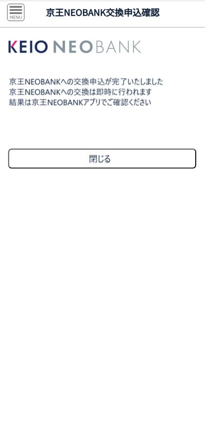 ❹申込完了京王NEOBANKへの交換が反映 スクリーンショット