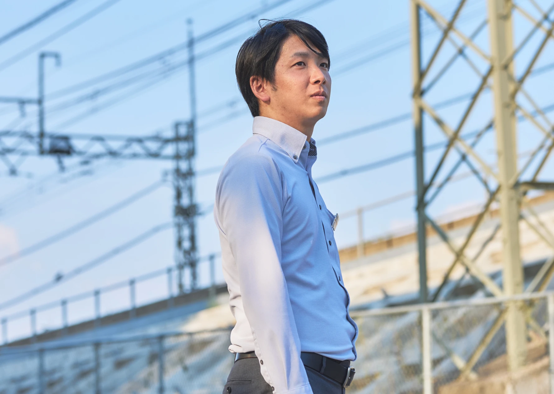私の仕事の舞台は、駅と鉄道沿線。主に照明や空調など、お客さまに身近な電気設備の工事を手掛けています。普段からお客さまの目に触れる駅にある設備だからこそ、新しい機器が取り付けられた時には、自分の仕事の成果が実感できます。駅というのは、鉄道会社とお客さまが最も関わる場所です。電車に乗る時も、電車から降りる時も必ず駅を通り、その時に鉄道会社の色、すなわち“らしさ”を伝えることができます。私は現在、京王多摩川駅の改良工事を担当。京王“らしさ”を表現しながらも、新しい街と調和する駅を実現するために、社内外の関係者と連携をとって工事を進める毎日です。