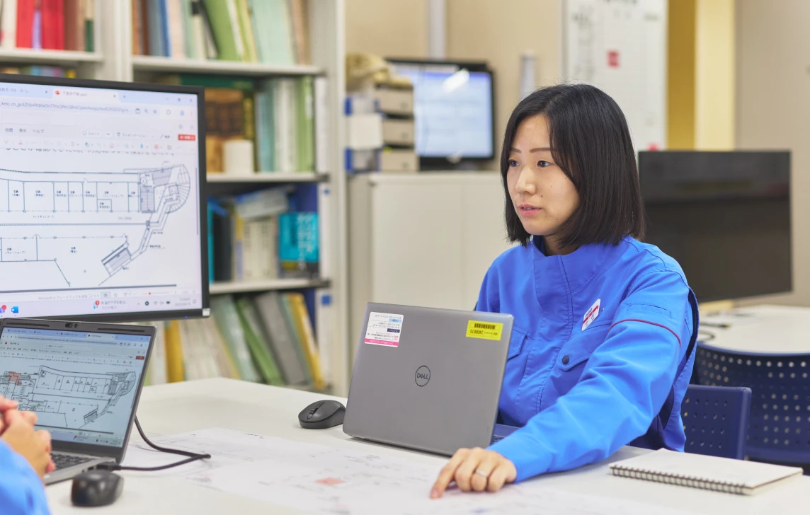 「挑戦の機会」と「手厚いサポート」に恵まれたことです。入社1年目にして、エレベーター設置プロジェクトの担当となったときは、とてもうれしかったですが、大きな工事発注は初めての経験で、積算のやり方など分からないことだらけでした。そんなとき、上司や同僚が何度も打ち合わせの場をセッティングし、熱心に教えてくれました。とても心強く感じたことを覚えています。そして2年目には、助役というポジションでマネジメント業務に挑戦させてもらっています。若手にも責任ある仕事をどんどん任せ、上司や先輩がサポートしてくれる会社なので、自分を成長させるうえでも良い環境だと思います。