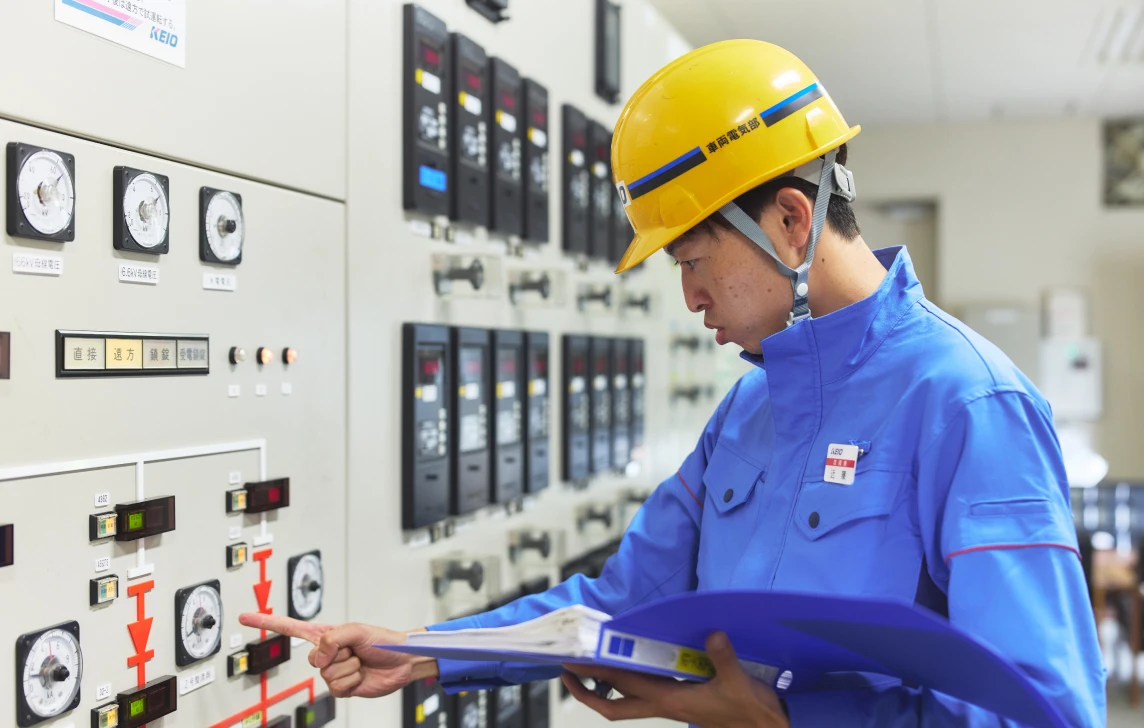 前職は、電力関係の会社で、家庭向けの電気工事に携わっていました。転職を考えたのは、将来に対して収入面などで漠然とした不安を感じたから。次の会社選びは、前職で培った電気関係の知識を活かせること、長く安定的に働けることを条件にしました。そこで注目したのが鉄道会社。鉄道は安定的であるばかりでなく、社会的に重要なインフラで社会にも貢献でき、やりがいのある仕事だと思いました。京王電鉄は、東京の私鉄の中でもサステナビリティに力を入れている印象があり、将来も安定的だと考えて入社を決めました。