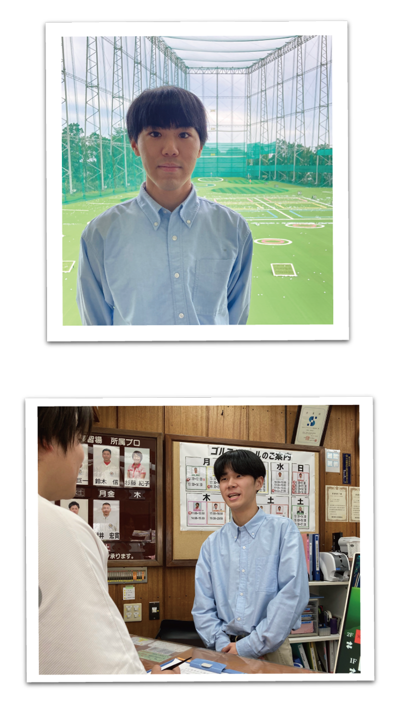 現在はゴルフ練習場で、フロントでの接客や設備の点検などを通して、お客様が快適に練習できる環境づくりを行っています。