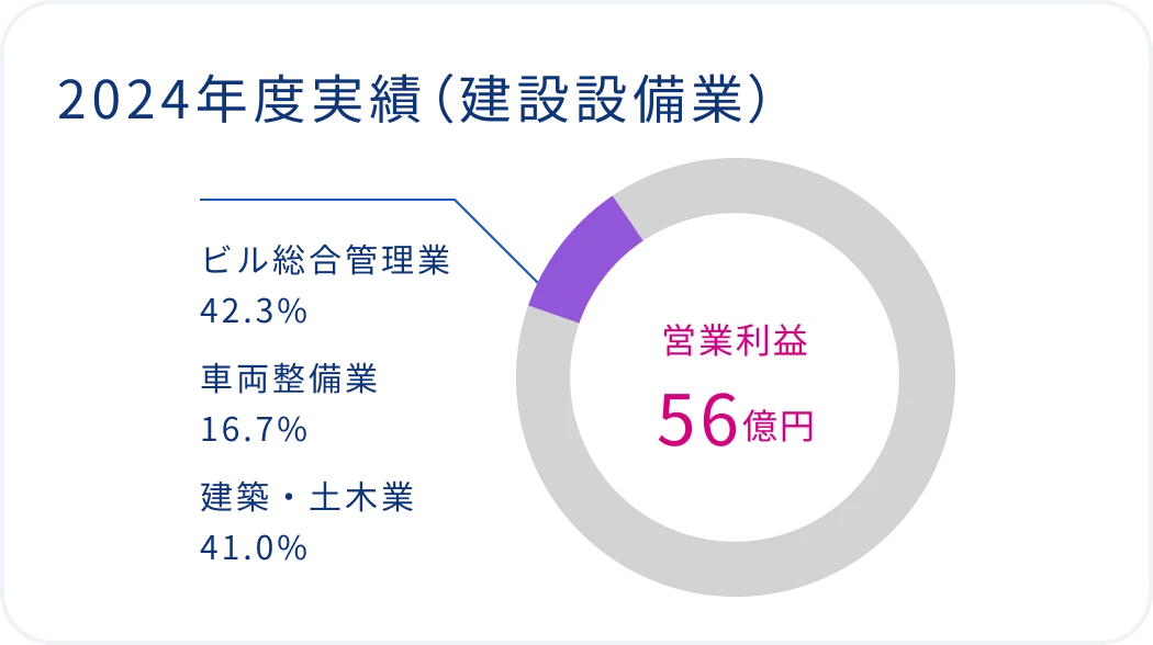 建設設備業では、「住んでもらえる、選んでもらえる沿線」の実現を目指し、ビルや施設の安全・快適性を維持する総合管理業、都市インフラを支える建築・土木業など、日常生活やビジネス環境を支える多岐にわたる事業を展開しています。京王グループの総合力を基盤にして、きめ細かなサービスや長年培った高い技術力を提供しています。