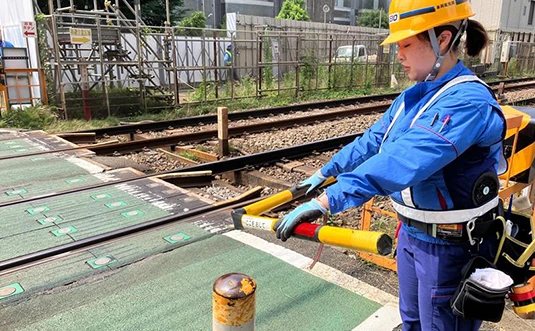 レールやマクラギなどの軌道構造物の維持管理、更換時期を迎えた軌道構造物の更換工事の発注・施工管理を行います。連続立体交差事業などの大規模改良工事における新設する線路の設計も担います。より安全で快適な線路づくりを行っています。