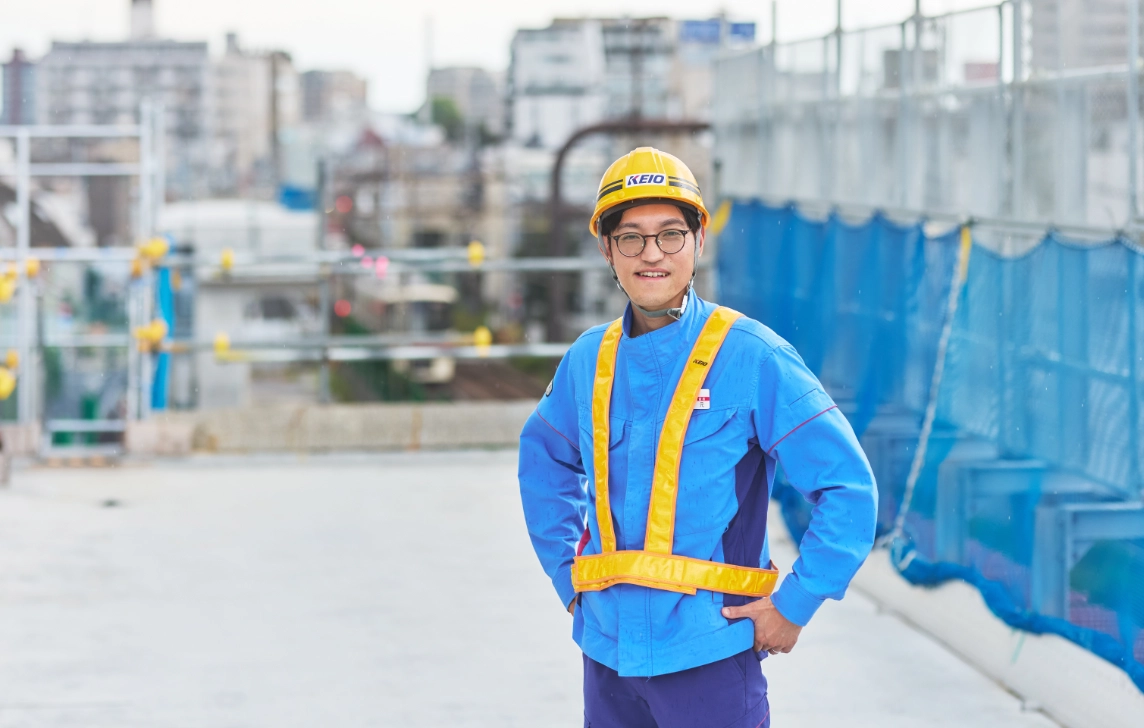 京王電鉄の工務部には、電車の安全運行を支える「縁の下の力持ち」の側面と、新しい路線や駅を建設し、100年先の未来を描く「創造者」の側面があります。私が携わっている連続立体交差工事は、京王線笹塚駅~仙川駅間の約7.2kmを高架化する事業。まさに後者を代表する一大プロジェクトです。踏切による交通渋滞や地域の分断を解消するとともに、創出される高架下空間などを活用して魅力的な街づくりにつなげることを目的としています。私は東京都や世田谷区などの行政、施工会社と連携しながら、工事計画の策定や工事管理に従事しています。