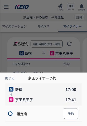 京王アプリからの購入はマイライナー設定後にご利用ください。