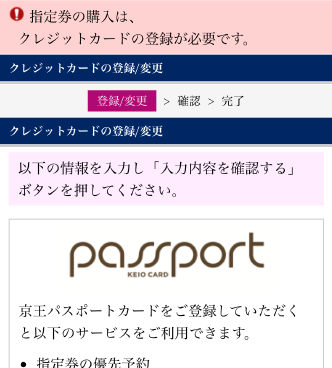 京王パスポートカードでの優先購入、ポイント加算・決済にはカード情報登録後、別途会員メニュー内で「優先予約サービス」の登録が必要です。